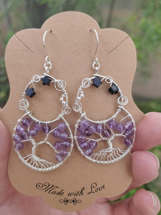 Akeso Earrings - Artisan Handmade 925 Sterling Silver Wire-Wrapped Earrings with Peridot and Amethyst – Elegant, Unique Jewelry
