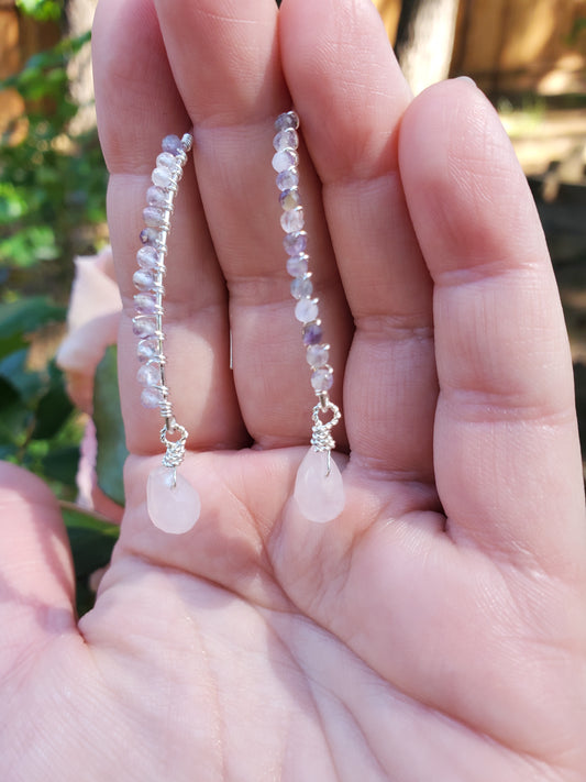 Amethyst and Rose Quartz Earrings - Elegant Handmade 925 Sterling Silver Earrings with Amethyst and Rose Quartz