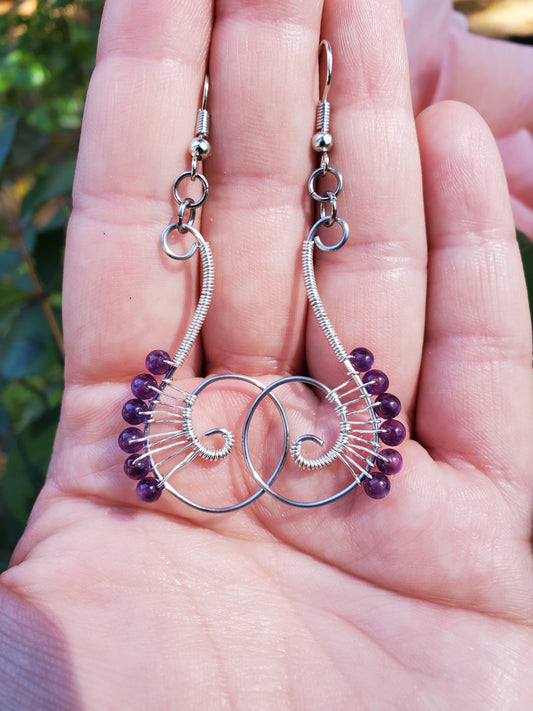 Amethyst Scroll Earrings in 925 Sterling Silver