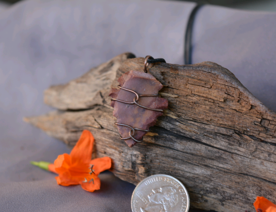 This Arrowhead is wrapped in antiqued polished copper and comes with an 18 inch copper chain OR a 20 inch leather cord.