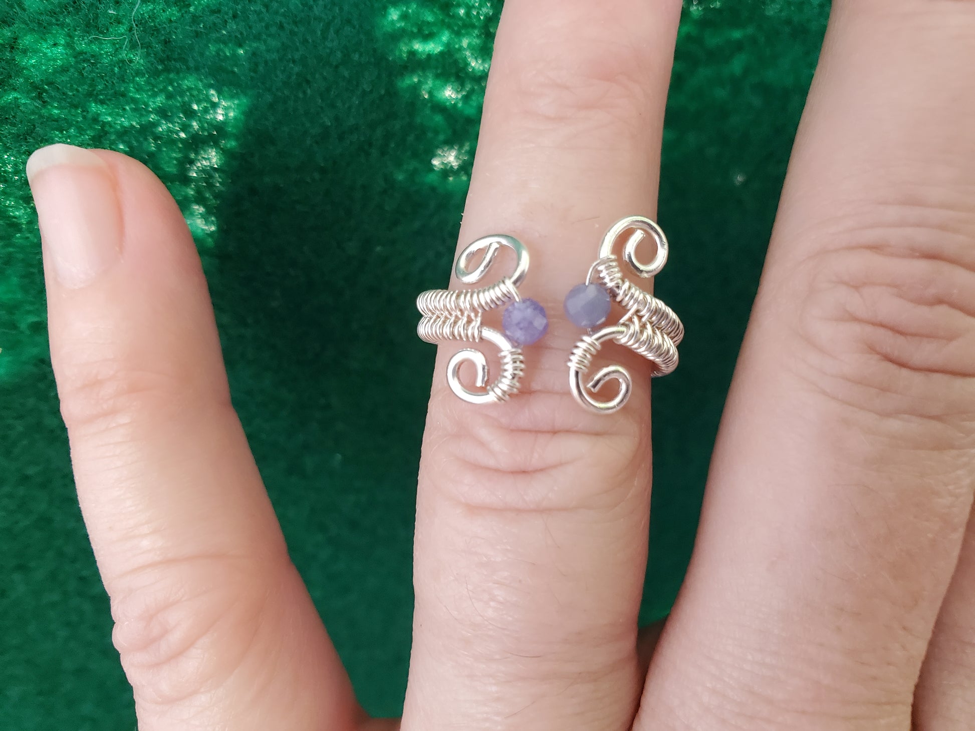 Woven, wrapped sterling silver wire with personalized stones. Option for the antiqued and polished look (first two images) or the bright silver look (3rd image). The antiqued look will age better with less polishing. A polishing pad will be included.
