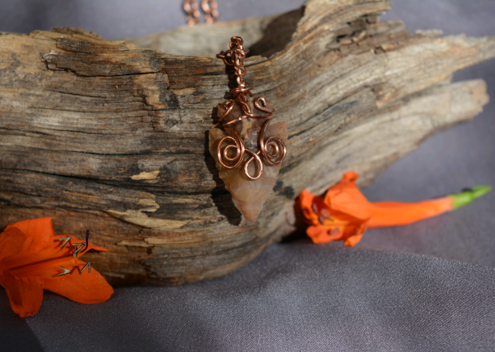This Arrowhead is wrapped in tarnish resistant copper and comes an 18 inch copper chain OR a 20 inch leather cord.
