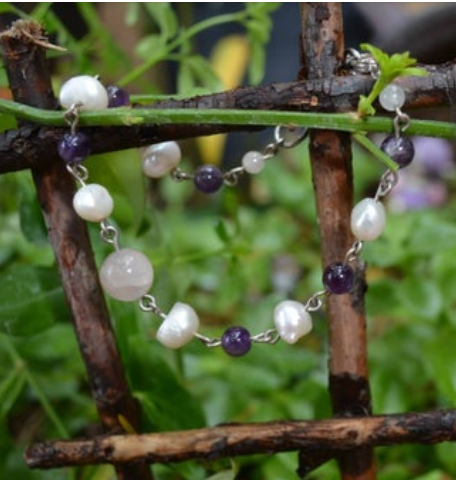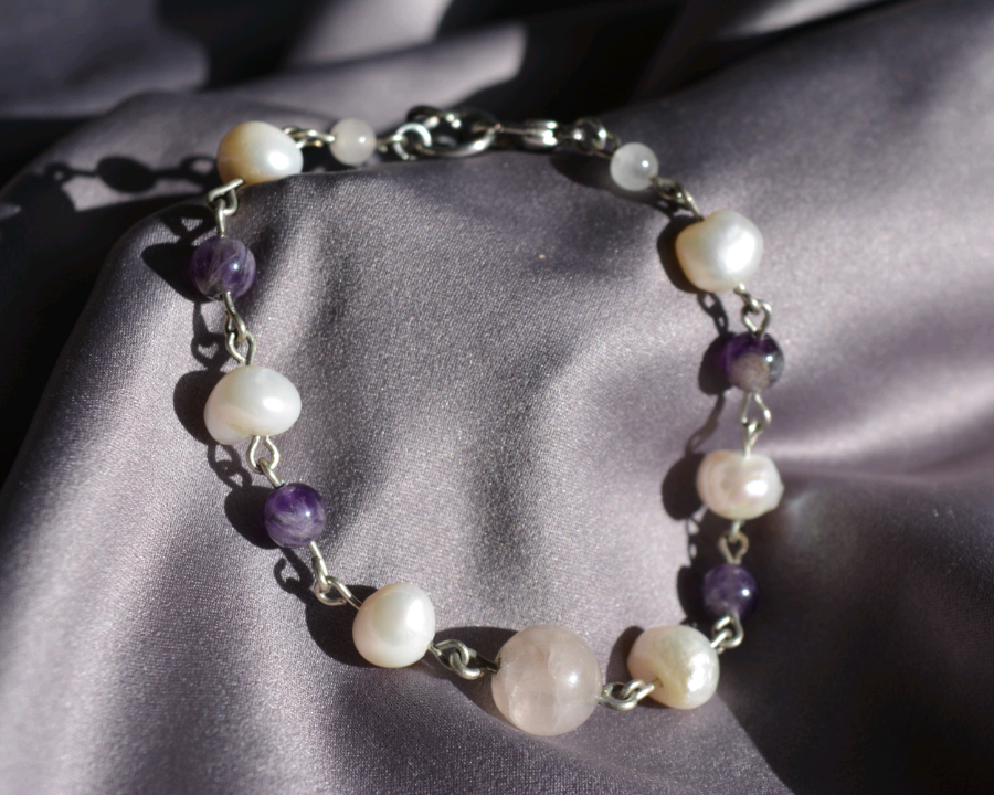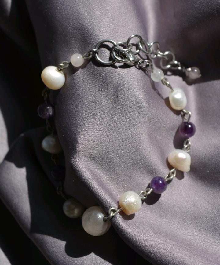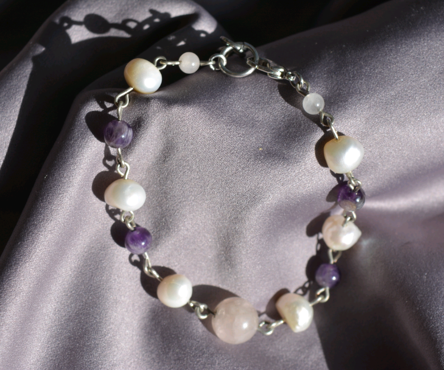 Princess- Pearl and Amethyst Bracelet with Rose Quartz.