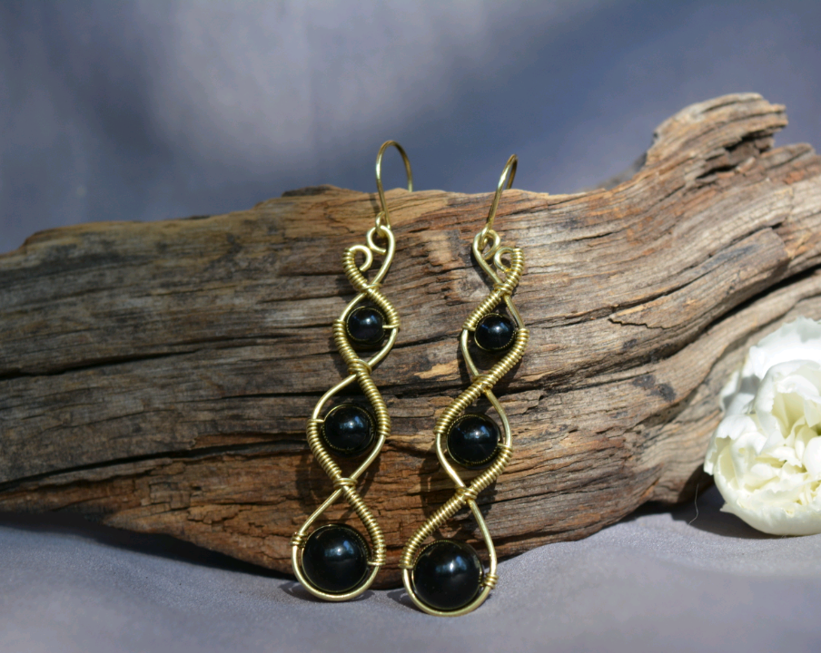 Stone of your choice wrapped in pure brass wire with handmade brass ear wires.