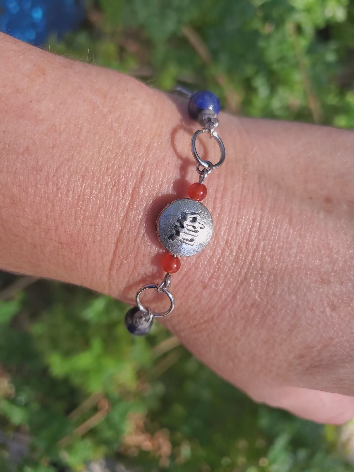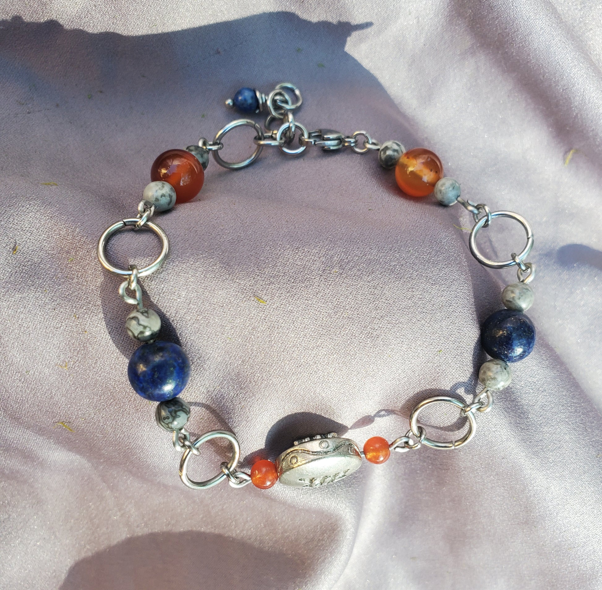 Virgo bracelet features Carnelian, lapislazuli, and map jasper beads.