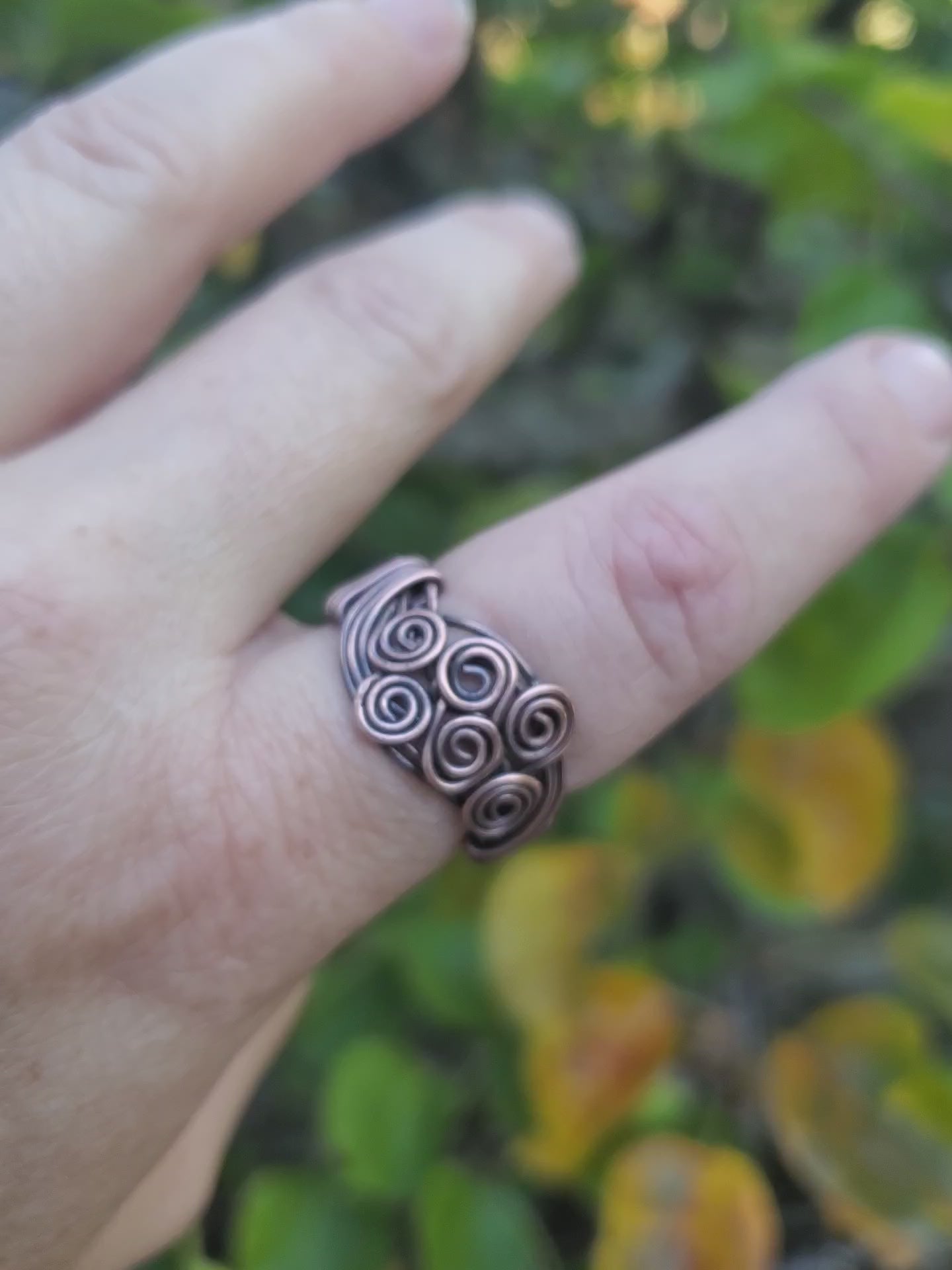 This braided pure copper ring features six strands of copper wire, braided, swirled, hammered, antiqued, and polished into a true piece of handmade jewelry art.