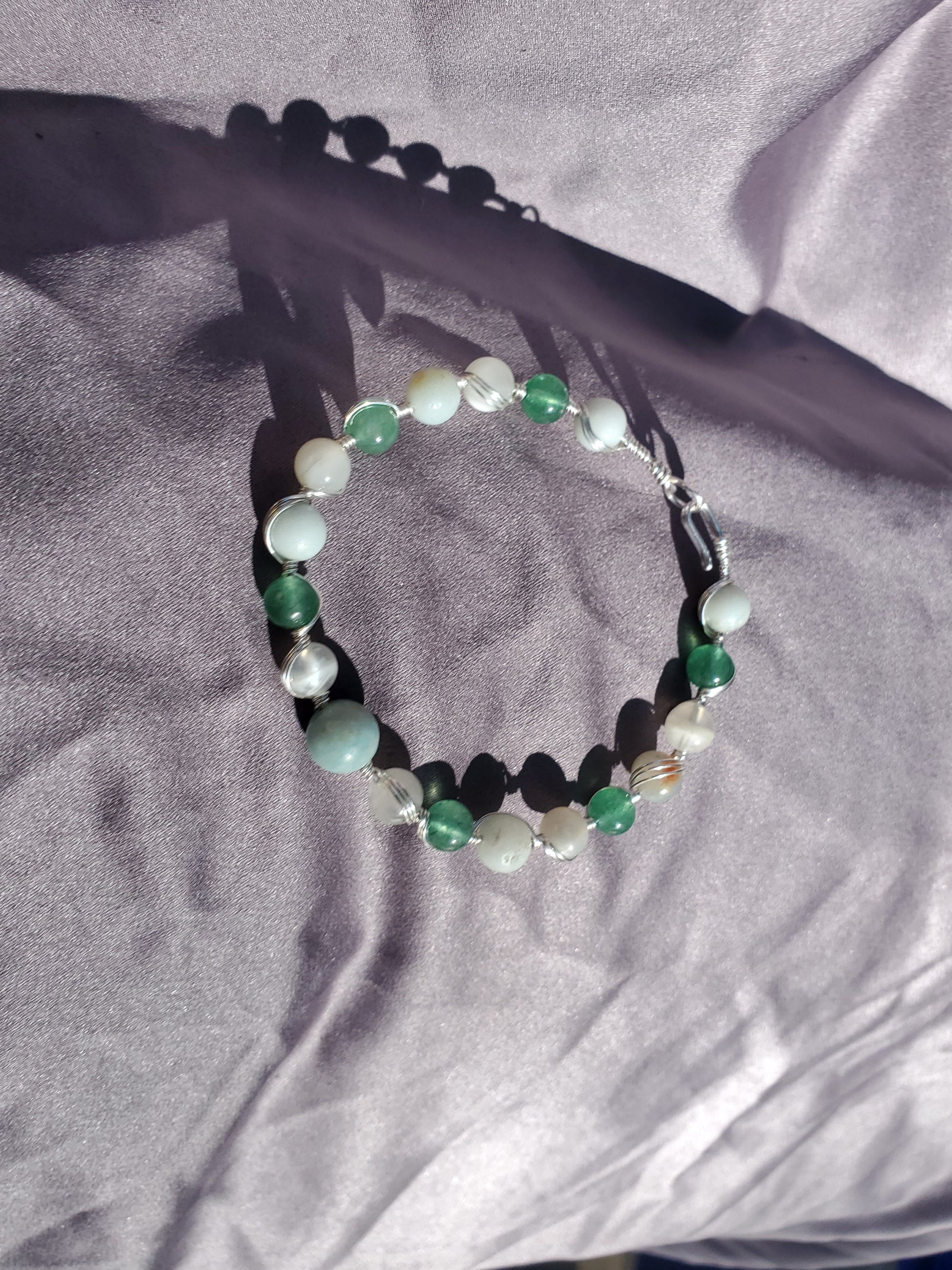 Wire Wrapped Bracelet with Amazonite, Moonstone, and Aventurine
