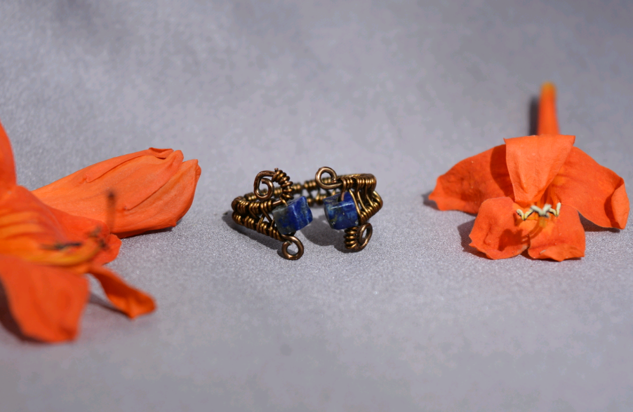 Woven, wrapped, antiqued and polished copper wire with personalized stones.